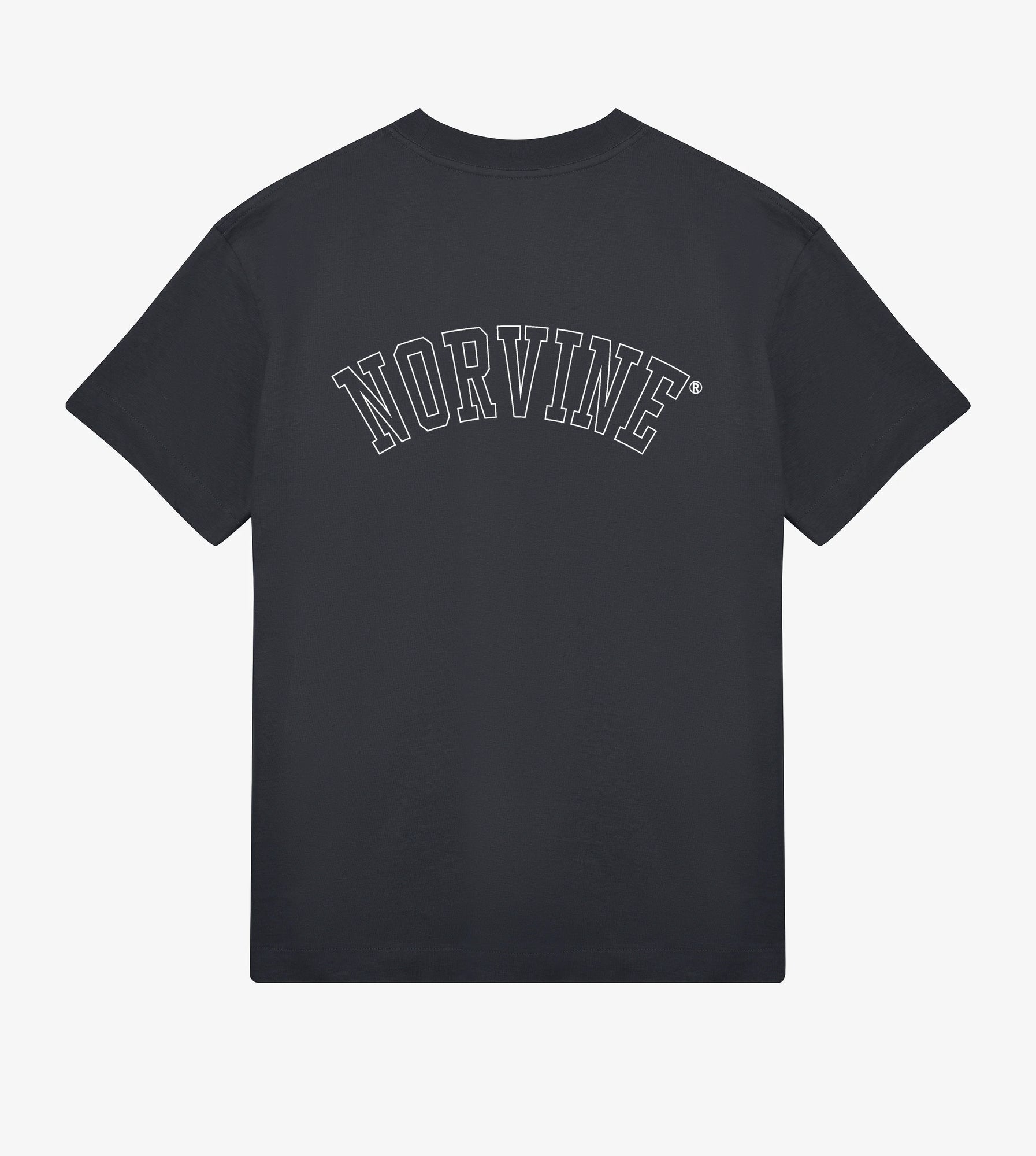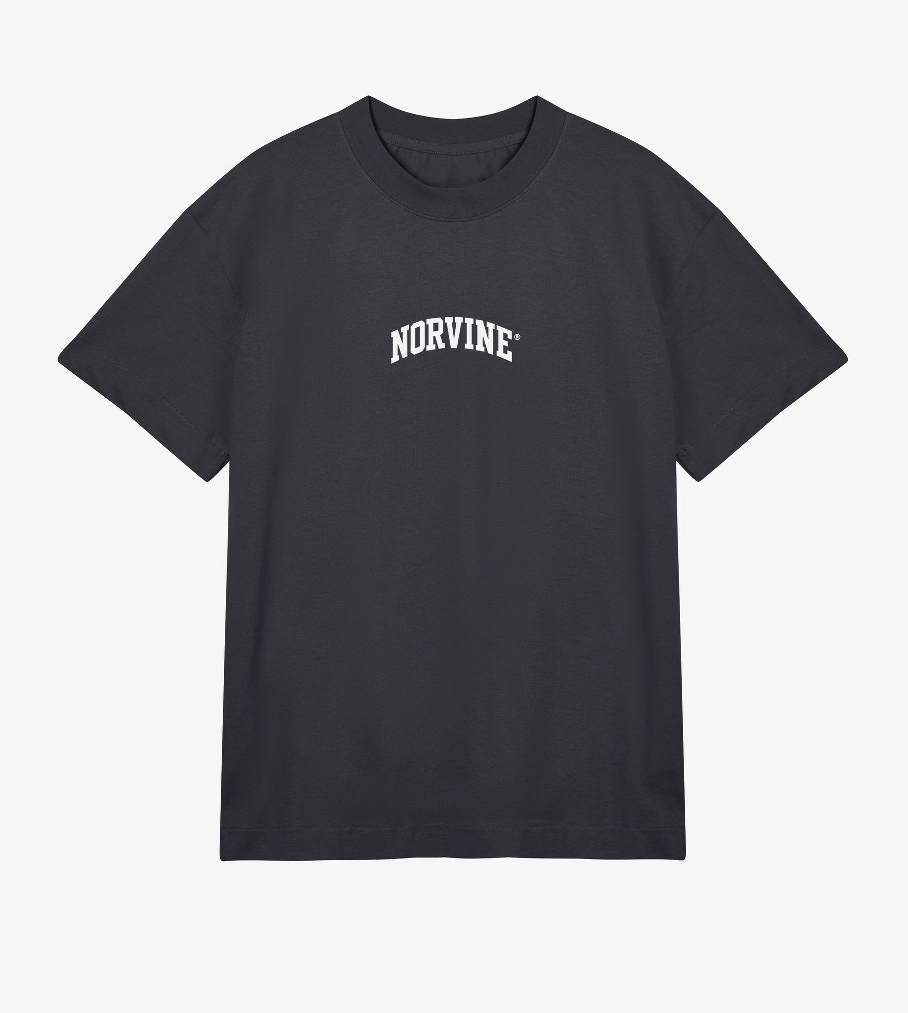 Ce T-shirt Norvine pour homme est fabriqué en 100 % coton biologique lourd, jersey simple, avec une coupe boxy et un col côtelé haut assurant forme et maintien. Il comporte des coutures à une aiguille aux extrémités des manches et à l’ourlet allongé. Les autres détails de construction incluent des coutures d’épaule rabattues avec bande de propreté et des coutures enchaînées/superposées sur la couture.